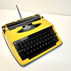 Gele vintage werkende Brother DeLuxe 800T typemachine geel, zwarte toetsen uit 1976