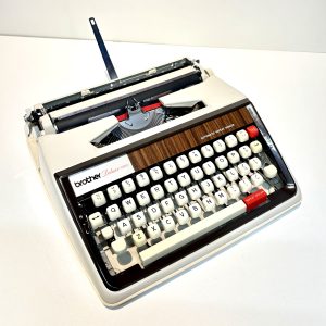 Faux wood crème werkende vintage Brother de Luxe 1350 typemachine uit 1972